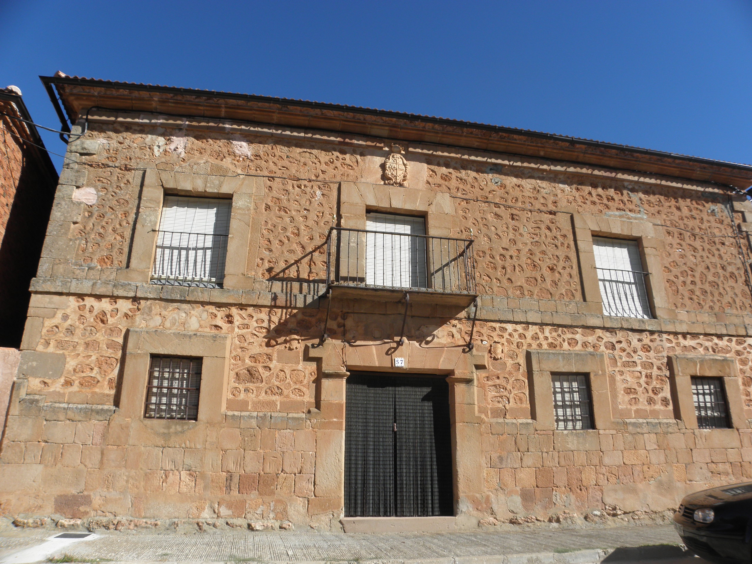 En la carretera se encuentra un edificio de dos plantas construído en sillería y mampostería que conserva escudo nobiliar en la fachada. Este escudo es de la familia Díaz del Río, nobles que poséian tierras y casas en este pueblo y que estaban emparentados con Juan Bravo.