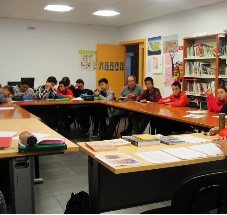 Primer taller de esta tercera fase, con alumnado y profesorado de primer y segundo curso de Educación Secundaria Obligatoria. El grupo formado por 25 chicos y chicas de entre 12 y 14 años que acuden a Prádena desde diferentes pueblos del entorno, acompañados de algunos de sus profesores, ha sido hasta el momento, el grupo más numeroso con el que hemos trabajado, lo que ha supuesto un reto, sumado a la introducción de nuevas fórmulas de comunicación que hemos querido probar para seguir avanzando en esta propuesta. En esta ocasión hemos realizado algunas entrevistas a los informantes durante la grabación del programa, que se suman a las previas del trabajo de campo para la recogida de información. Y estamos satisfechas.