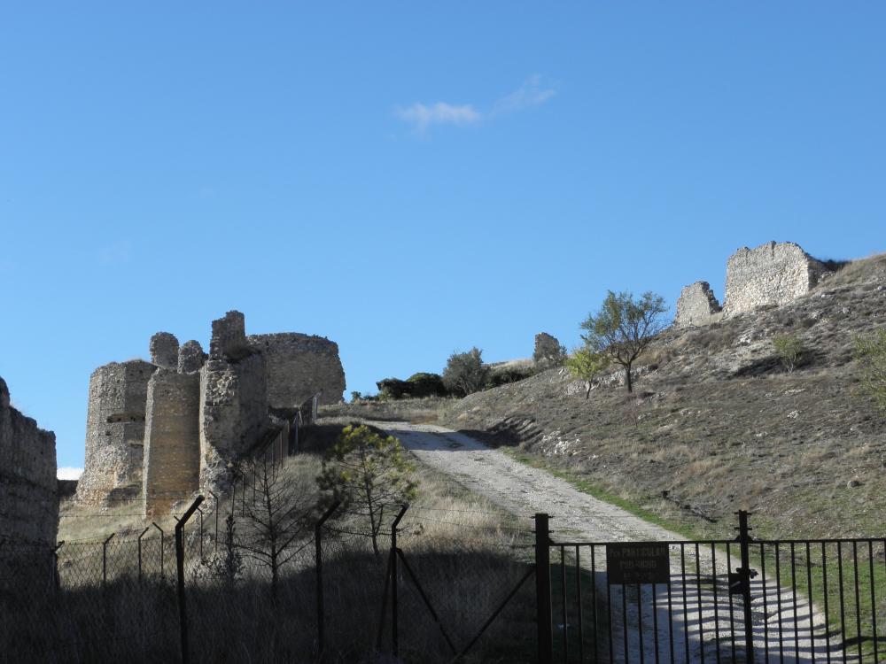 Este recinto amurallado debió de eregirse en los momentos de explendor de la villa en los siglo XII y XIII. Se adapta perfectamente a la sinuosidad del terreno, reforzado por una serie de cubos de desigual formato y distribución. El perímetro defensivo conserva tres puertas. En la parte alta del recinto fortificado, y asociado al mismo, se conservan los estos del castillo.
