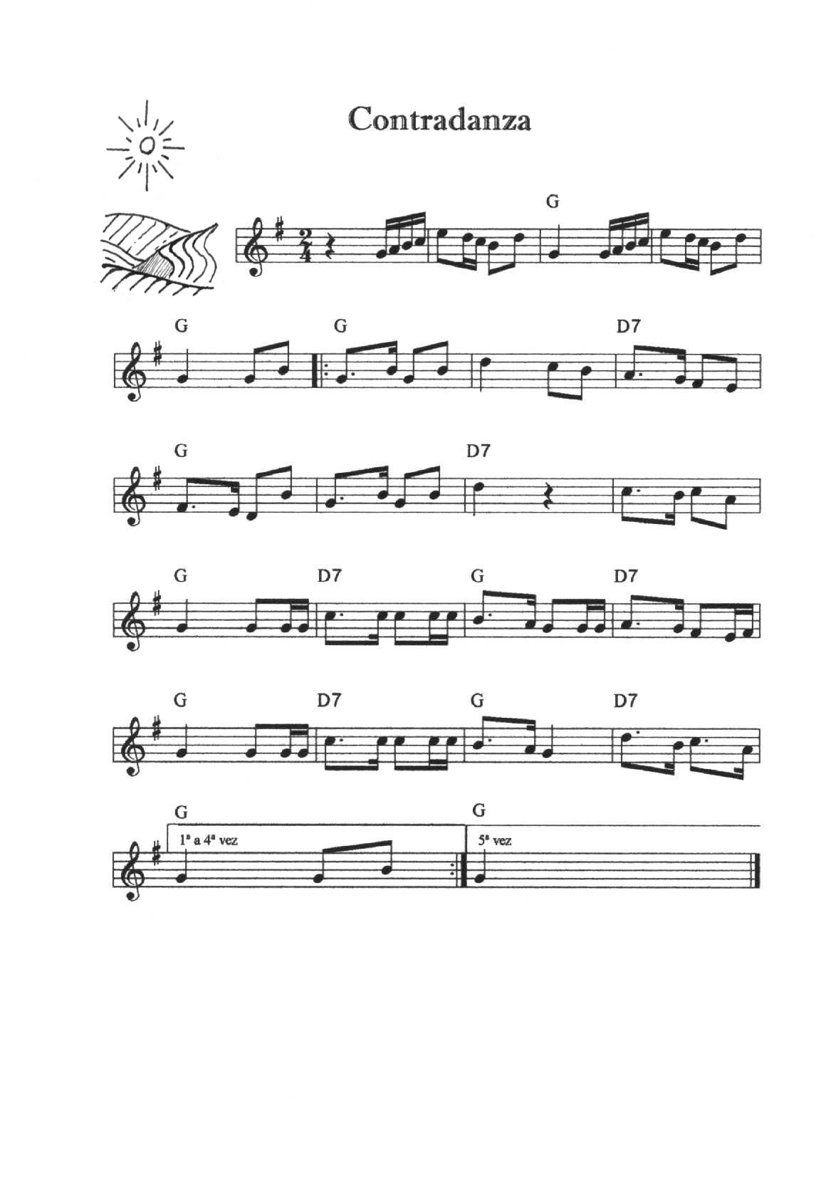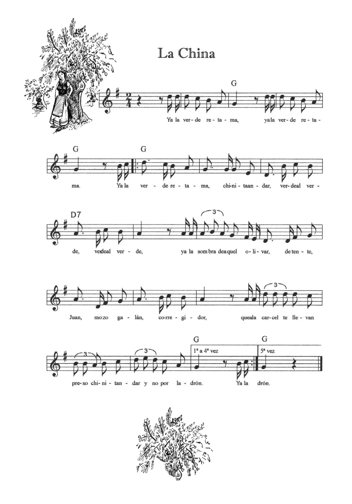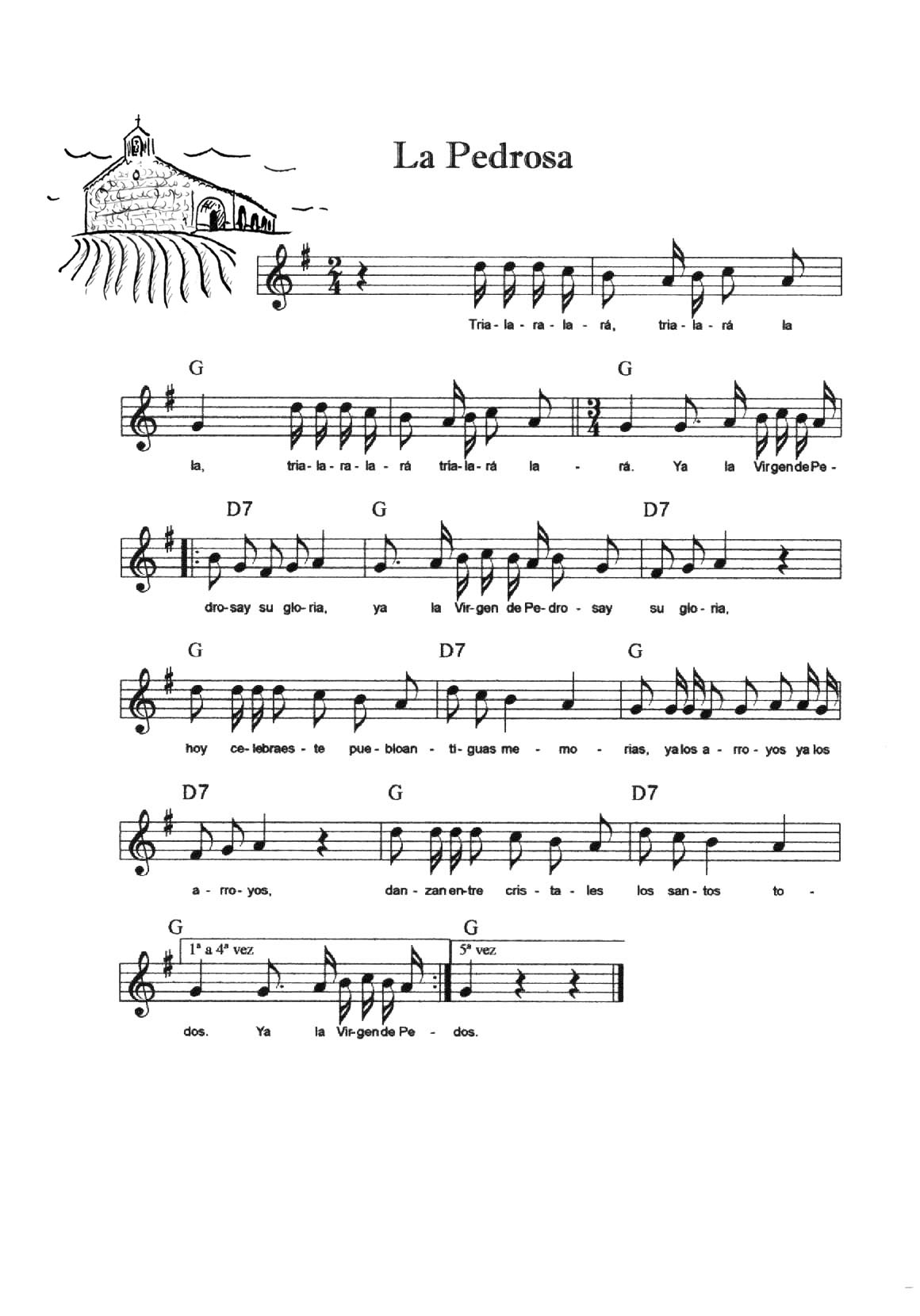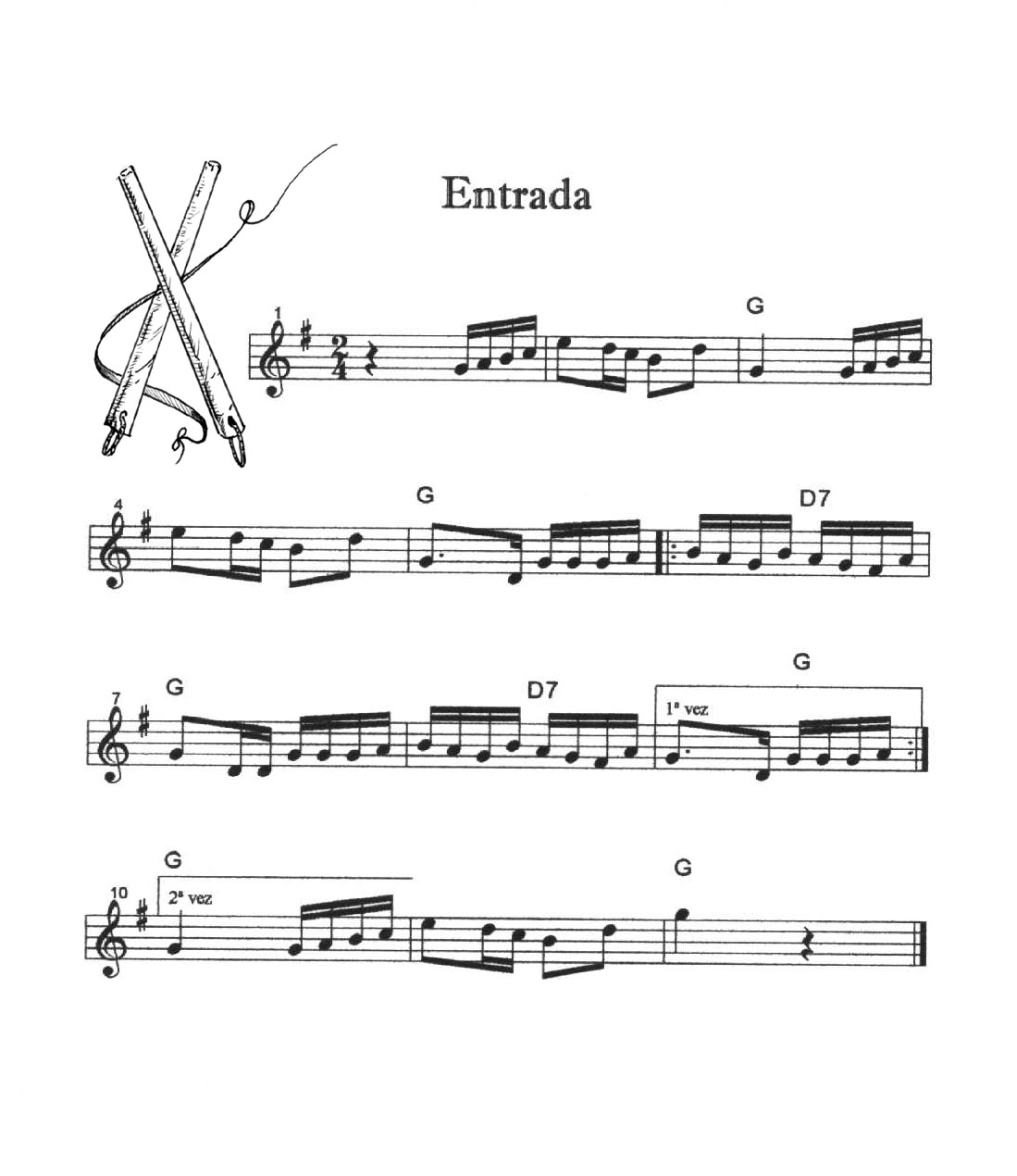 Cada una de las melodías se toca cinco veces (cinco calles); siempre hay unos compases de introducción, éstos no se repiten. La Entrada y la Peregrina se tocan indistintamente para que entren o salgan los danzantes (la melodía de La Entrada se repite las veces que haga falta).