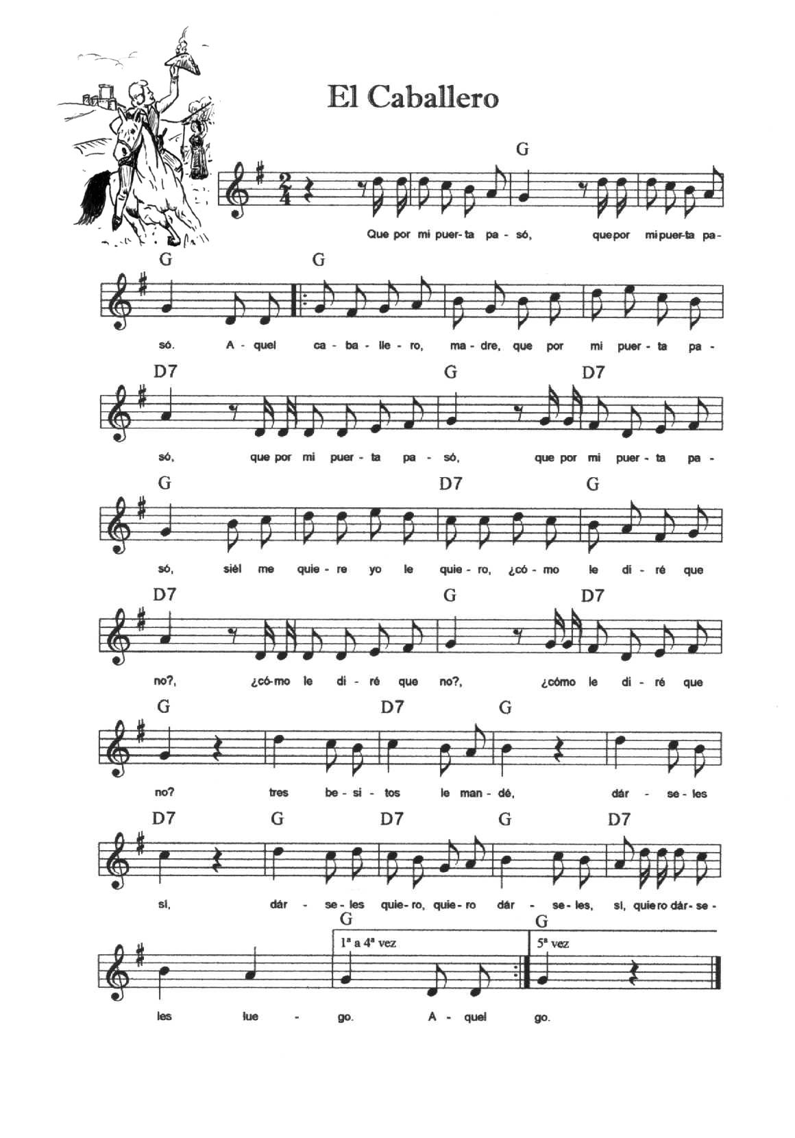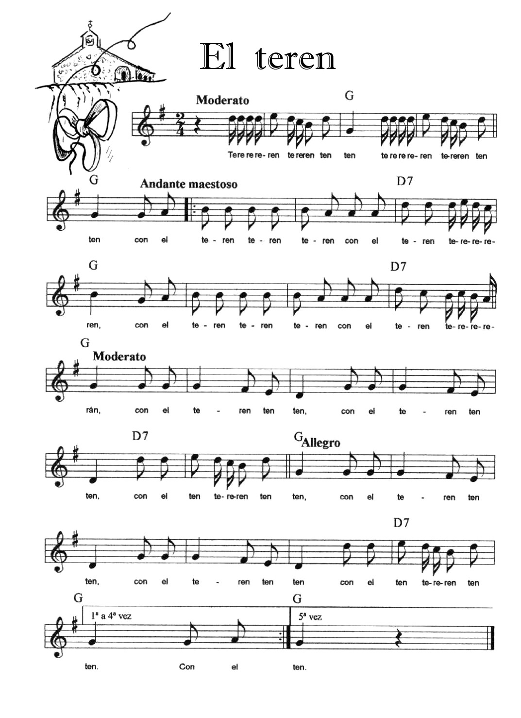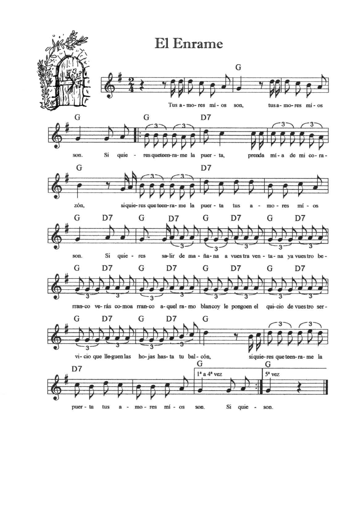 Cada una de las melodías se toca cinco veces (cinco calles); siempre hay unos compases de introducción, éstos no se repiten. La Entrada y la Peregrina se tocan indistintamente para que entren o salgan los danzantes (la melodía de La Entrada se repite las veces que haga falta).