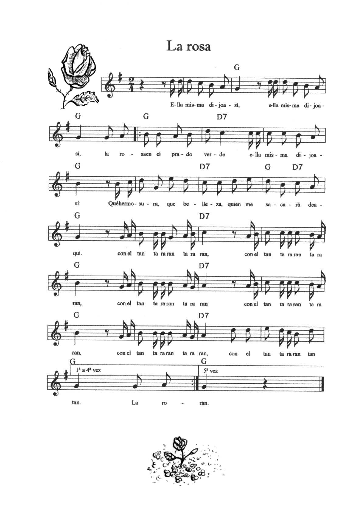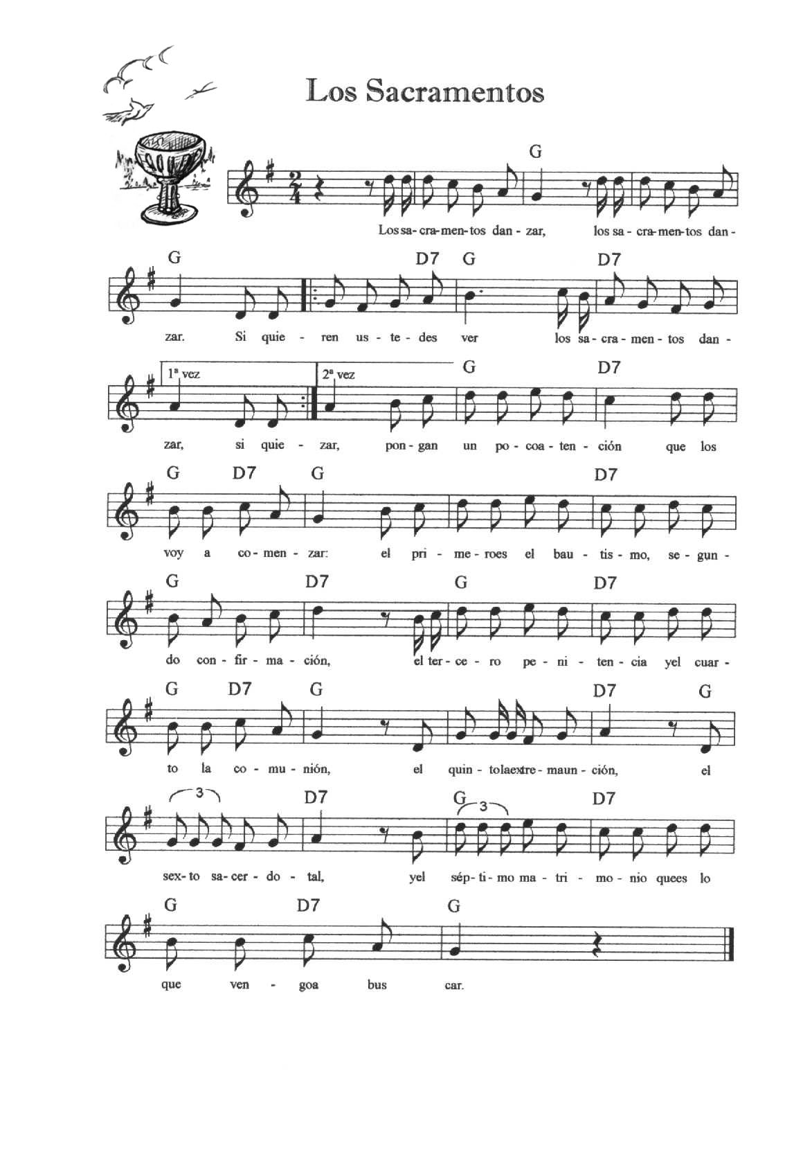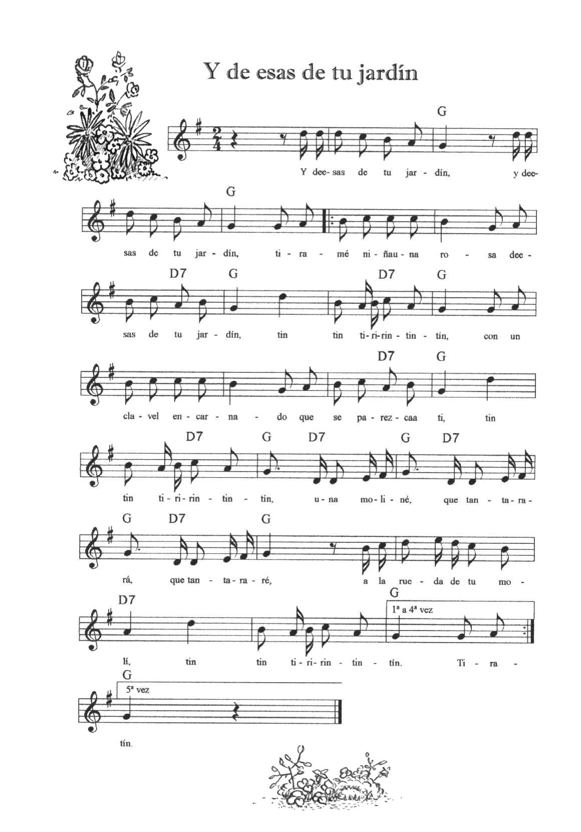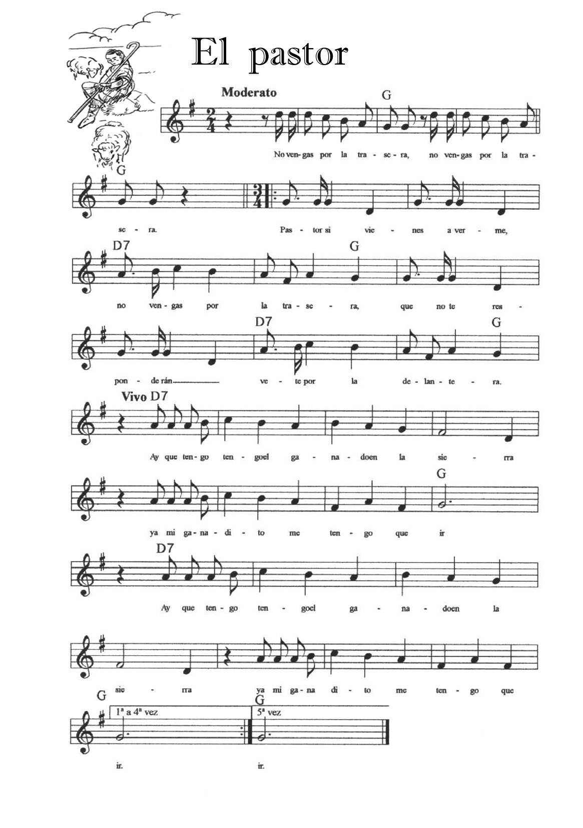 Cada una de las melodías se toca cinco veces (cinco calles); siempre hay unos compases de introducción, éstos no se repiten. La Entrada y la Peregrina se tocan indistintamente para que entren o salgan los danzantes (la melodía de La Entrada se repite las veces que haga falta).