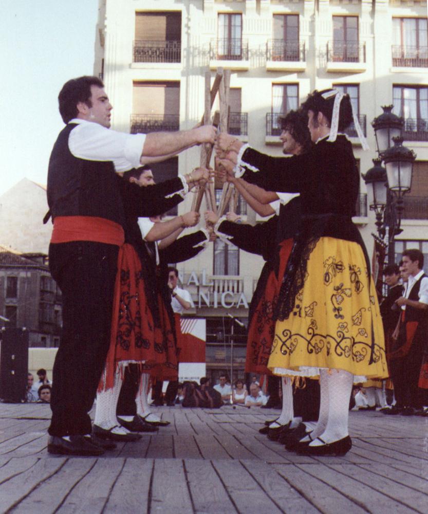 Coincidió que yo estaba empezando a tocar la dulzaina y acompañaba al grupo Valle de Olid en sus ensayos y actuaciones, y aprendí del Sr. Pedro no solo cómo tocar la melodía de estos paloteos sino también cómo hacerlo en conjunción con los danzantes.